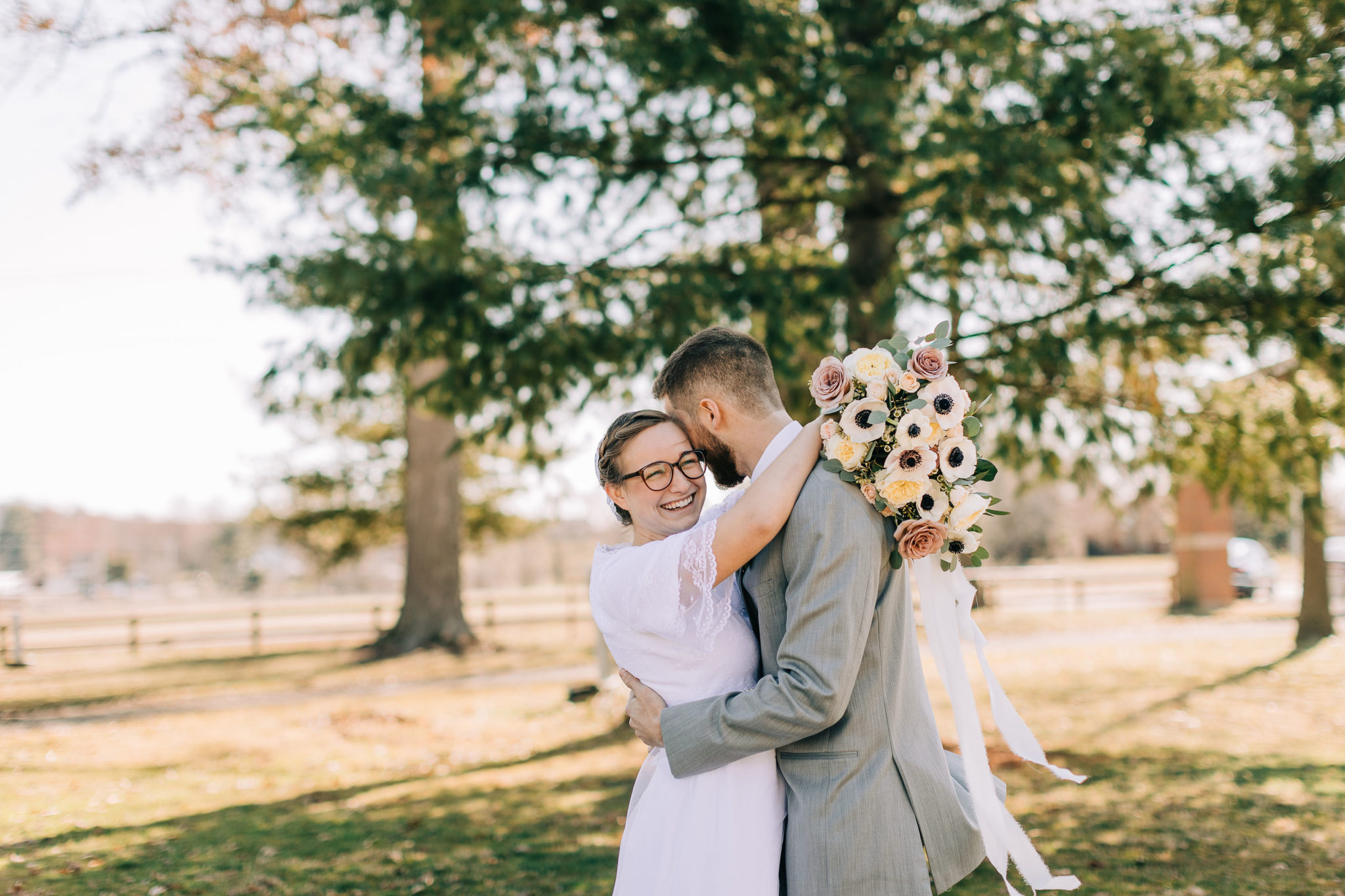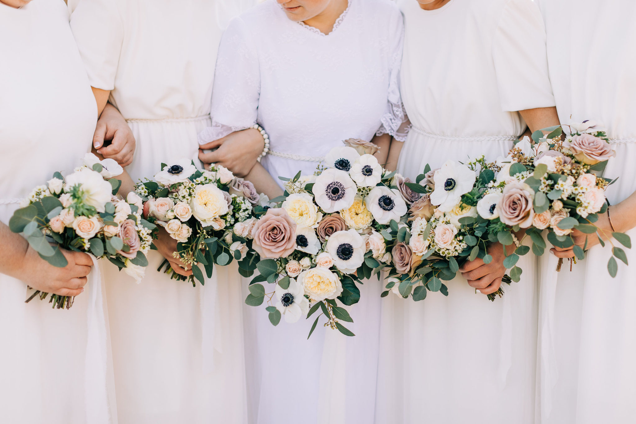 Her bouquet had plenty of her favorite flower, the ever lovely and delicate anemone, as well as David Austin Patience garden roses, mauve Amnesia roses, fluffy Majolica spray roses, waxflower, and eucalyptus.