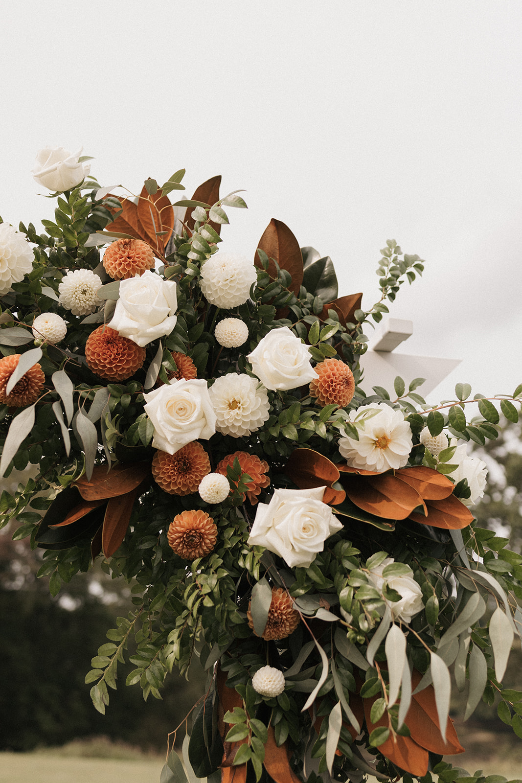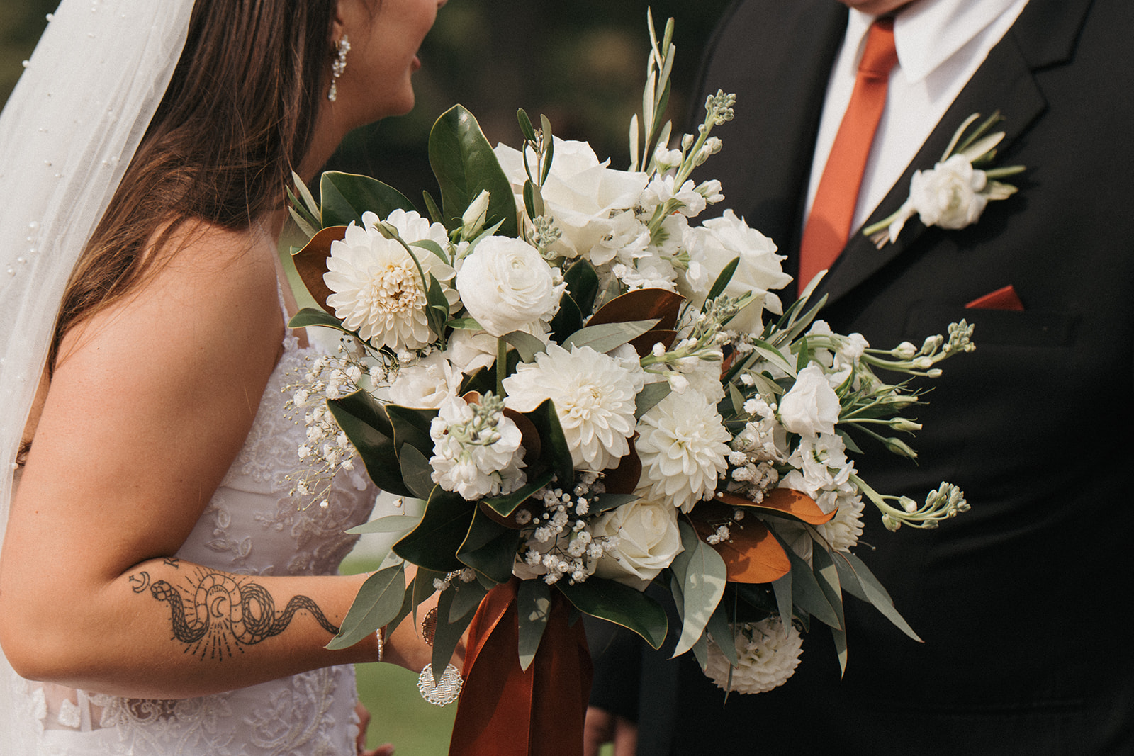 Serafina + Chris’ September wedding took place at the beautiful Shady Hollow Country Club and all the happiness was just par for the course. Serafina’s flowers included lots of dahlias, roses, stock, ranunculus, magnolia, lisianthus, baby’s breath, and olive. Serafina was so sweet to work with and super-organized, which makes my job easy! Congrats to the newlyweds!